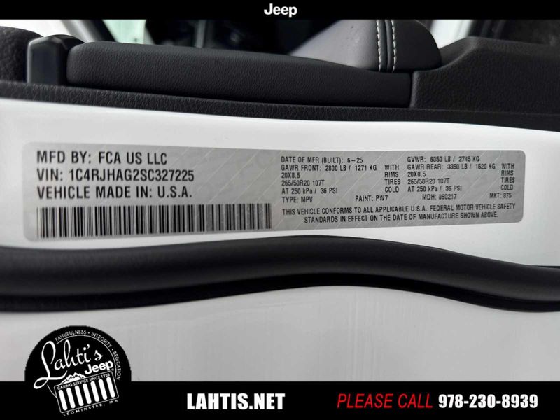 QUICK ORDER PACKAGE 23M ALTITUDE X Engine: 3.6L V6 24V VVT UPG I w/ESS, Transmission: 8-Speed Automatic 8HP50, Altitude X, Selectable Tire Fill Alert, Remote Start System, Rain Sensitive Windshield Wipers, Wireless Charging Pad, Heated Front Seats, Black Headliner, Power Sunroof, Delete Laredo Badge, 115V Auxiliary Power Outlet, Gloss Black Exterior Accents, Heated Steering Wheel, Power Liftgate, WHEELS: 20 X 8.5 GLOSS BLACK PAINTED ALUMINUM Tires: 265/50R20 BSW A/S LRR, TRANSMISSION: 8-SPEED AUTOMATIC 8HP50 (STD), ENGINE: 3.6L V6 24V VVT UPG I W/ESS (STD).
